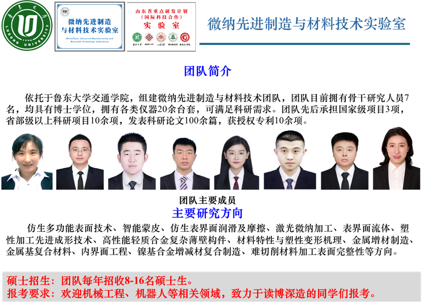 3. 山东省自然科学基金青年基金:仿生多维微梯度结构耦合弹性表面增效减阻机制及精准制造(主持)