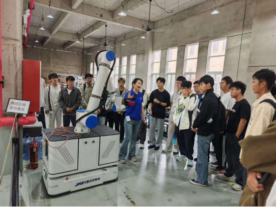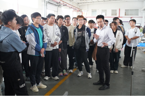 在山东经世智能科技有限公司,创始人秦立夫学长向大家展示了公司在移动复合机器人、数字孪生等前沿技术的研发与应用情况。结合自身从学生到创业者的经历,他强调了综合素质的重要性:“机械工程是一个广阔的舞台,技术是核心,但沟通能力、团队协作和永不满足的创新精神同样关键。”他勉励学弟学妹尽早树立目标,将个人成长与国家在智能制造领域的战略需求相结合,争做有理想、敢担当的新时代工程师。