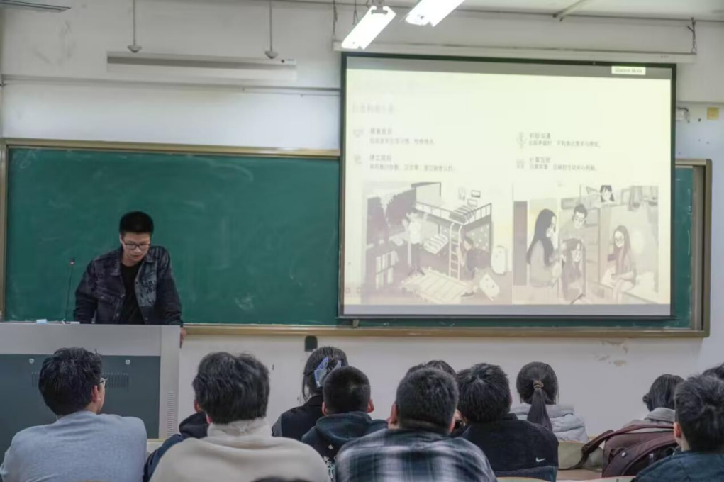 活动伊始,由高年级学长结合自身的学习经历与日常生活,聚焦大学生自我认知、人际协调、学业压力三大困惑,用现实案例阐释树立正确“三观”、提升心理与协作能力的重要性,引导同学们以积极心态面对成长中的挑战。